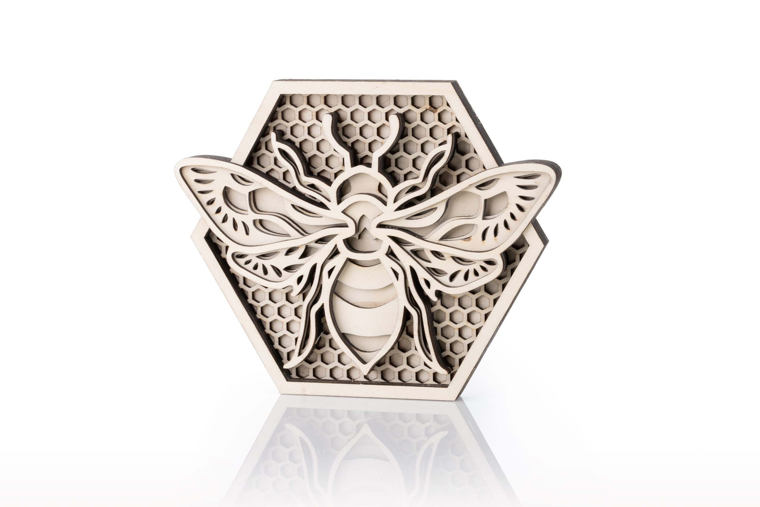 Lesena mandala ČEBELA je šest-plastna unikatna dekoracija, ki združuje harmonijo naravnih elementov in simboliko čebel. Lasersko izrezana iz kakovostnega lesa z izjemno natančnostjo, mandala prikazuje čudovite vzorce, ki odražajo čebeljo delavnost, povezanost in ravnovesje v naravi. Ta estetski kos je popoln za popestritev vašega doma ali kot premišljeno darilo, ki navdihuje s svojo simboliko in toplino lesa. Mandala ČEBELA ni le umetniški izdelek, ampak tudi opomnik na pomembnost čebel v našem življenju.