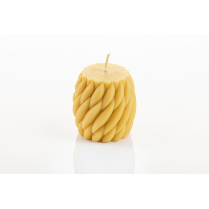 Ročno ulita sveča iz 100 % naravnega čebeljega voska s spiralnim, pletenim reliefom. Pri gorenju oddaja nežno medeno aromo in ustvari toplo, zlato svetlobo, ki vnese mir in domačnost v vsak prostor.